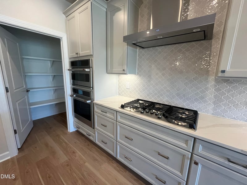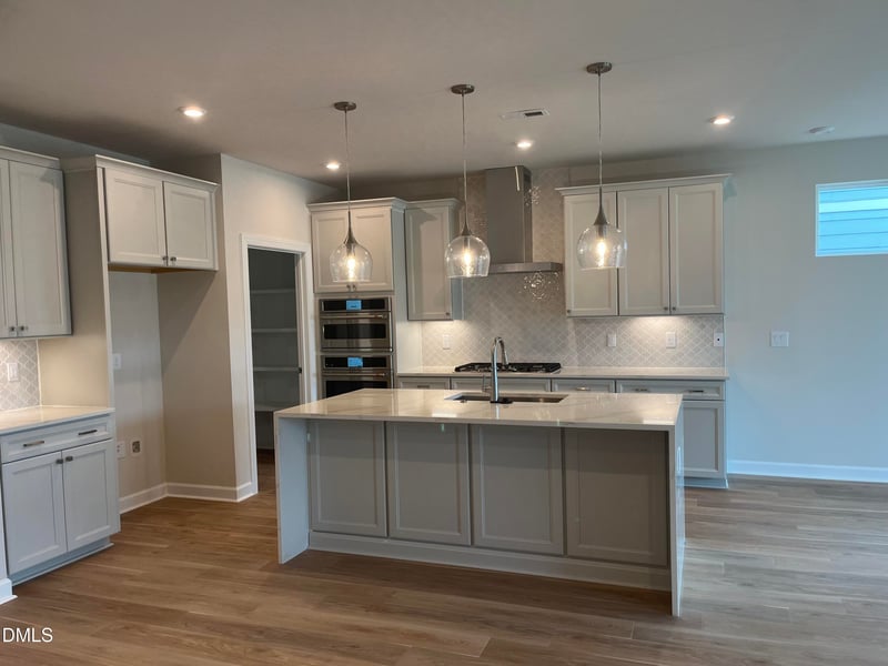 Step inside to a bright open-concept living area anchored by a gourmet kitchen gas cooktop, quartz countertops, and a large island perfect for entertaining. The kitchen flows seamlessly into the dining area and great room, where the door opens onto a covered rear patio with an outdoor fireplace—ideal for relaxing and entertaining in all seasons.