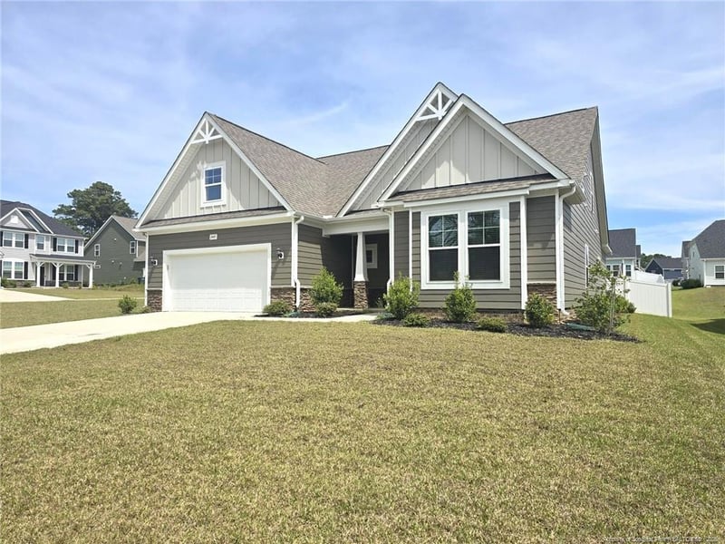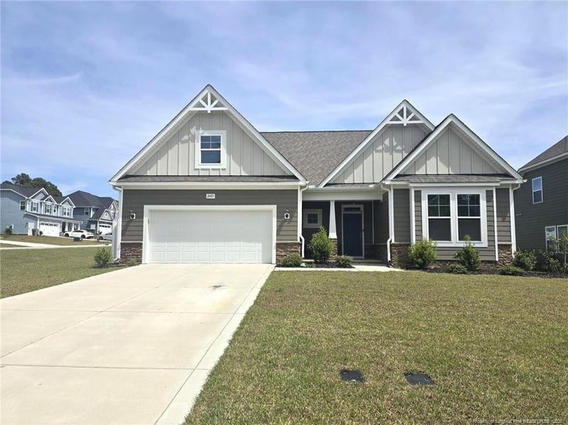 Listing details for 2405 Brian Davis Ct, Fayetteville, NC 28306 : This stunning residence offers the perfect blend of luxury and convenience, with the community lake and dock just a short stroll away. Step inside to discover a beautifully designed first floor, featuring luxury vinyl plank (LVP) flooring that flows seamlessly throughout. The heart of the home is the gourmet kitchen, a chef's delight equipped with granite countertops and a large island. The main floor also hosts the private main suite, a tranquil retreat complete with a large, spa-like tile shower and a walk in closet. The innovative split floor plan places two additional bedrooms on the opposite side of the home, ensuring privacy for all. Upstairs, a spacious loft, a fourth bedroom, and a full bathroom provide flexible living space for family or guests. Enjoy the outdoors from your patio overlooking the yard, and benefit from the convenience of a 2-car garage. Located just minutes from I-295 access, area shopping, restaurants, and the New Publix, this home offers easy access to everything you need. Come schedule your viewing today!