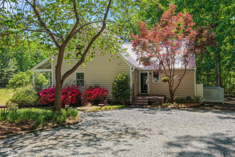 Listing details for 241 Windsor Rd, Chapel Hill, NC 27516 : If ever there was a property that INVITED you to DREAM, CREATE and EVOLVE, this is it. Perfectly tucked into the Chatham County countryside, this 10.01 acre CHAPEL HILL addressed paradise is near it all but far enough away to make the hustle and bustle of everyday life just melt away. This POST & BEAM beauty with METAL roof, VAULTED living space and Primary Bedroom downstairs makes a super strong case to just never leave. The brilliance, beauty and warmth of the light-filled TIMBER structure and hardwood floors inside is a direct reflection of the hardwood trees outside while the gardens and plantings seem to reach out and give the property one of the sweetest hugs you might ever imagine. A grand walkout deck perfect for GRILLIN' and CHILLIN' is situated near the luxe kitchen (that comes complete with an AGA range) will get your grilling/smoking juices flowing. Idyllic BIRDSONG enhances this paradise, transforming it into a sanctuary for all who visit. So. Are you craving your very own floral farm side hustle with the amazing peonies, hydrangea, azaleas, iris and lamb's ear that fill in the visual landscape? Maybe CHICKENS are your thing? They're here too (and can convey!). Perhaps you want to horse around or just want a bona-fide reason to finally throw down for that tractor, GATOR or zero-turn mower? Problem solved. Or how about cutting your teeth with FRUIT TREE farming with trees and bushes that already produce (peaches, figs, NECTARINES, plums, apples, cherries, persimmons, blueberries--see document for the full lineup)? Can there even be more? Yep. How about a detached 2-car Garage with workshop space to fix, well, just about anything PLUS a separate 590 sf of flex space above that comes complete with a KITCHENETTE and bathroom perfect for creating an exercise studio fit for a land BARON/BARONESS or a remote ''satellite'' office or a place to camp out those Southern Living magazine folks for their article site visit on your victorious victory gardens or whatever. Come see for yourself--I'm betting you'll be glad you did.
