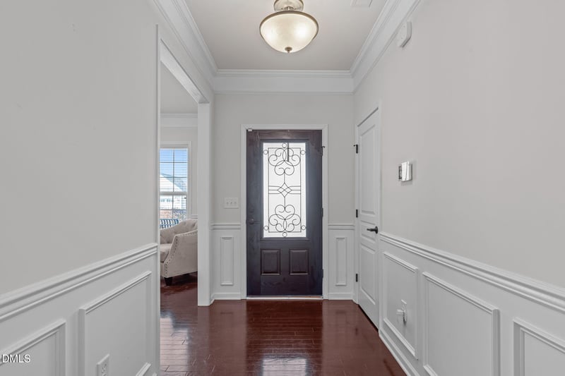 Listing details for 2414 Kinglass Dr, Fuquay Varina, NC 27526 : Welcome to this beautifully designed 3-bedroom, 3 full bath home that lives like a ranch with a spacious and flexible open floor plan. The main level features engineered hardwoods throughout the living areas, a formal dining room, and an inviting entryway with detailed wainscoting and crown molding that sets the tone for the thoughtful finishes throughout. The gourmet kitchen is perfect for entertaining with granite countertops, an expansive center island with seating and storage, double ovens, a gas cooktop, walk-in pantry, and a butler's pantry offering exceptional prep and storage space. The kitchen opens to a spacious family room with a cozy gas fireplace, creating the perfect gathering space for friends and family. Just off the main living area, a bright sunroom or sitting area provides an ideal place to relax and unwind. The primary suite on the main level features a tray ceiling with crown molding, creating a private retreat. The ensuite bath includes a garden tub, gorgeous modern walk-in shower, and dual vanity sinks, offering a spa-like experience at home. Rounding out the first floor is a spacious secondary bedroom, full bathroom, and laundry room. Upstairs, you will find a nicely sized loft, a generously sized bedroom with walk-in closets, a full bath, and abundant floored attic storage providing storage galore. Step outside to enjoy the fenced backyard that backs to the greenway, offering privacy and a peaceful setting.