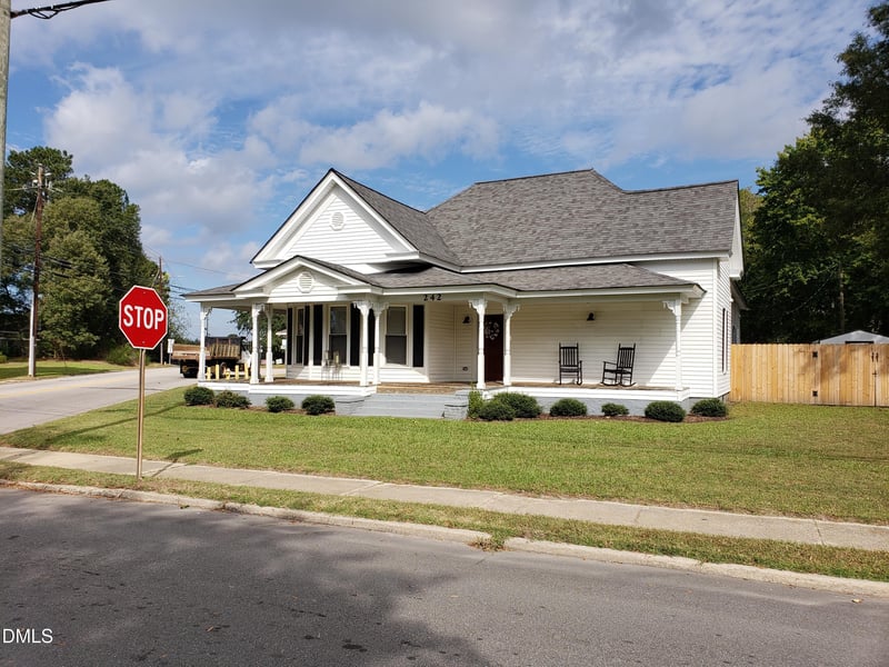 Listing details for 242 Academy St, Wendell, NC 27591 : Own a unique part of Downtown Wendell. This property fronts 3 separate roads: Wendell Blvd, Marshburn Rd, and Academy St. It has a separate address for each building (242 W Academy and 3169 Wendell Blvd) and each has separate power and utilities. The first building is a 2000 sq ft fully renovated historic home, currently offered on VRBO as ''Cottage on the Boulevard''. With 5 years of successful rent roll on VRBO and Airbnb, this property brings in around 45k a year. It is currently zoned residential, but can be converted to commercial. The second building is zoned as an office/retail single tenant building that is 1632 sf. This building has also been fully renovated with 4 office/deck spaces, conference table, kitchen and eating area, a classroom that seats 20, and storage . The parking lot is behind this brick building so it does not restrict the parking of the rental house or guests which use the driveway on Academy St. These two buildings are only separated by 6-8 feet so they can not be divided or sold separately. They could easily be combined to create a 4000 sf building, or used as is. The brick building currently generates rental revenue, but could be used or rented out as a full time retail or office building. The property is not in the historic district, but benefits from a tax reduction from the age of the property. It is within walking distance of downtown Wendell and has high visibility due to its location on three of the main road interchanges. Showings will need to be arranged around guests as this is a very popular and successful VRBO rental.