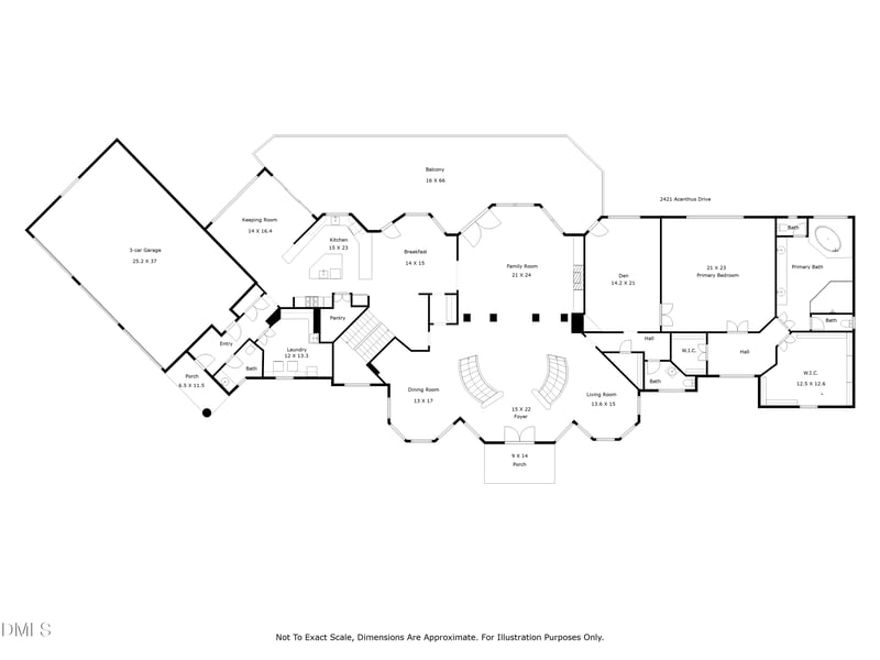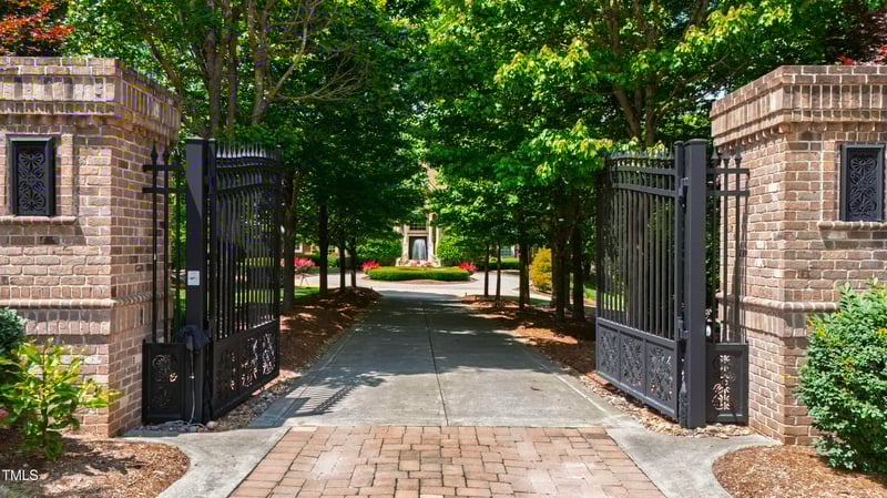 Listing details for 2421 Acanthus Dr, Wake Forest, NC 27587 : Located in the exclusive gated community of Back Nine Estates near prestigious Wakefield Plantation, this stunning all-brick, gated estate is a rare find offering over 3.9 acres of private, exquisitely-landscaped grounds. The property features a brick-paver driveway encircling an impressive fountain, an extraordinary sandstone front porch, and multiple garages, including a three-car upper-level garage and lower-level RV and single-car garages with an electric charging station. The outdoor living space is unparalleled, with a zero-entry saltwater Pebble Tec pool, a rock waterslide, a grotto spa, an expansive stone patio, an outdoor fireplace and a 1,056-sf elevated terrace with panoramic views. Perfect for entertaining, the outdoor kitchen is equipped with a Lynx gas grill, granite countertops, task lighting, and ample storage. Inside, this home boasts an elegant grand foyer with double cascading staircases, travertine flooring, extraordinary millwork, Murano glass chandeliers and flows beautifully into multiple gathering spaces. The open kitchen adjoins a fabulous keeping room with floor-to-ceiling windows and features a gas fireplace, a breakfast bar, top-of-the-line Thermador appliances, a center island with a prep sink and one of two dishwashers, a walk-in pantry with Miele coffee/expresso maker, and a perfectly-placed butler's pantry. The owner's wing offers a private den with a two-sided gas fireplace, custom walk-in closets and dressing room, and a luxurious primary suite with a spa-like bath featuring heated floors, a huge steam shower, a bubble massage soaking tub, marble flooring, and dual water closets. The finished basement includes an in-law suite with a full kitchen and family room, game room, theater, custom wine cellar with 750 bottle storage, and more. The third-floor offers additional flex space with windows showcasing views of the stunning backyard oasis. This versatile space is perfect for dance, fitness, work, or relaxation, with plenty of natural light. Equipped with advanced systems such as a whole-house generator, whole-house water filtration, central vacuum, and an extensive security system, this home offers ultimate comfort and convenience. Ideal for those seeking luxury, privacy, and extraordinary amenities, this property is truly one-of-a-kind. PERFECT FOR MULTI-GENERATIONAL LIVING. BASEMENT OFFERS SEPARATE LIVING QUARTERS.