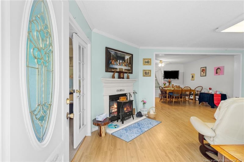 Listing details for 2424 Nc Hwy 55, Dunn, NC 28334 : Private & secluded feel with room to spread out! Nearly 2,800 total sf modular ranch (not a doublewide) featuring 3 BR + office (septic permitted for 4 BRs). Spacious layout includes living room w/ fireplace, family room, dining room, breakfast area, and large kitchen w/ bar, island & ample cabinetry. Oversized library/art room with built-ins, sunroom, and abundant storage.Exterior offers detached 1-car garage, workshop (contents negotiable), multiple storage buildings, gazebo w/ patio for entertaining, treehouse, and unique goldfish pond (converted from above-ground pool). Wooded front/side yard w/ open field behind for added privacy. County water/septic. No HOA. Property SOLD As-IS!Storage Buildings to Left of driveway Do NOT Convey, Seller owns lot to the left and will have buildings moved further onto that lot.