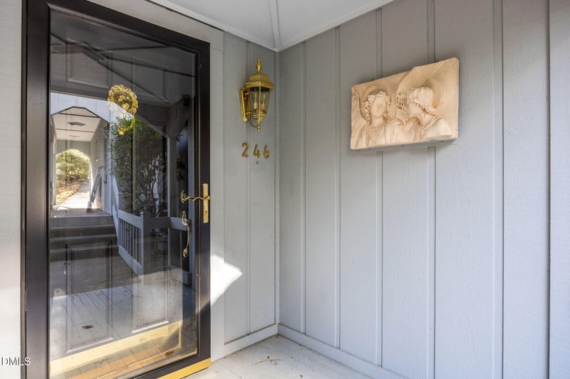 Listing details for 246 Fox Ridge Rd, Pittsboro, NC 27312 : Tucked among the trees in the heart of historic Fearrington Village, this striking 3-bedroom, 2½-bath contemporary home offers modern design, exceptional craftsmanship, and serene wooded views from nearly every room. With its clean architectural lines and abundant natural light, the home lives like a private modern treehouse--peaceful, elevated, and beautifully connected to nature.