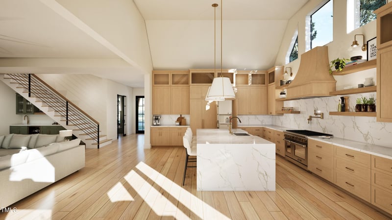 Listing details for 249 Mollie Meadow Dr, Zebulon, NC 27597 : Modern Lakefront Luxury by Royalty Homes... Experience elevated lakeside living in this custom-built home by Royalty Homes, perfectly positioned on an 80+ acre lake in the premier Cattail subdivision. Enjoy resort-style amenities including a pool, pergola, a community dock, and miles of shoreline at your doorstep. This modern executive home showcases distinctive architectural details and expansive windows. The open-concept design features a vaulted kitchen, dining area, and luxurious primary suite. The spa-inspired primary bath includes a freestanding soaking tub, oversized zero-entry shower, and dual quartz vanities. The gourmet kitchen is a showstopper with Thermador appliances, quartz countertops and backsplash, a walk-in scullery, and sleek frameless cabinetry. The family room is anchored by a floor-to-ceiling tile fireplace, floating cabinets, and a stylish wet bar—perfect for entertaining. The main level also includes a guest suite with its own bath and zero-entry shower. Upstairs, a spacious recreation room, loft, and two additional bedroom suites provide flexible living space. Outdoor living is just as impressive, with a covered rear porch featuring a fireplace and retractable screens, plus a second covered porch for additional entertaining. A 3-car garage, sealed crawl space, irrigation system, and thoughtful finishes throughout complete this exceptional home.