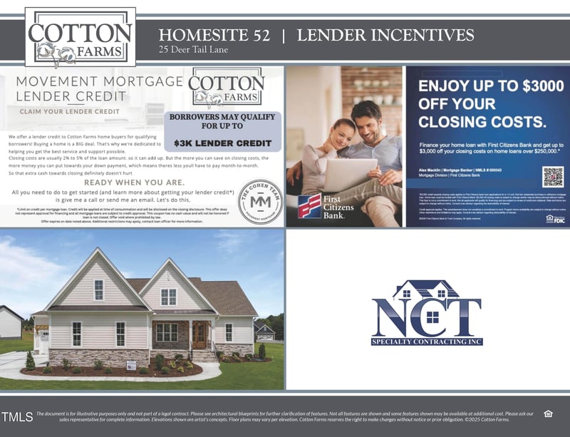 Listing details for 25 Deer Tail Ln Lot 52, Fuquay Varina, NC 27526 : *New Custom Builder Installed Fence* Welcome to this stunning custom-built 4-bedroom, 3-bath NCT home filled with thoughtful design and elevated finishes! Off the foyer, you'll find a private dining room with accented walls, leading into a spacious family room featuring gas logs, built-ins, and floating wood shelving. The kitchen impresses with a large island with quartz countertops and cabinet storage, stainless-steel appliances including a gas cooktop, wall oven, and microwave, plus ample cabinetry and a breakfast nook. Off the kitchen is a functional mudroom with a bench and cubbies, laundry room with sink and cabinets, and a generous walk-in pantry. The split floor plan offers privacy with the primary suite on one side, featuring an accent wall, double vanity, soaking tub, walk-in tile shower with bench, and a walk-in closet with built-in storage and a cozy window seat. Two additional bedrooms with a buddy bath are tucked behind the kitchen. Upstairs offers a built-in bookcase, expansive rec room with a window seat, more cabinetry and shelving, a fourth bedroom, and full bath. Enjoy the screened porch overlooking the backyard--this home truly has it all! Extra features include site finished hardwoods, tankless water heater and sealed crawl space. Preferred Lenders offering up to $3000 towards Buyer Closing Costs (conditions may apply).