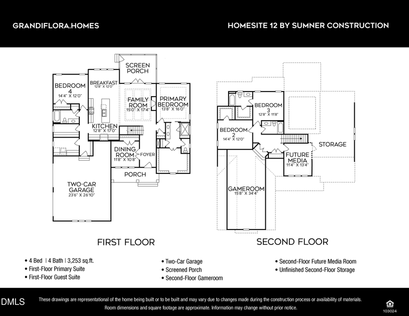 Designed for convenience, the first floor includes a luxurious Owner's Suite with a trey ceiling and a spa-style bath featuring a dual vanity and an oversized walk-in shower. A second guest suite and a dedicated study are also located on the main level, providing a versatile floor plan. Upstairs, you will find 2 additional bedrooms, including an ensuite bedroom, alongside a massive gameroom and a future media room, ensuring plenty of space for every need.