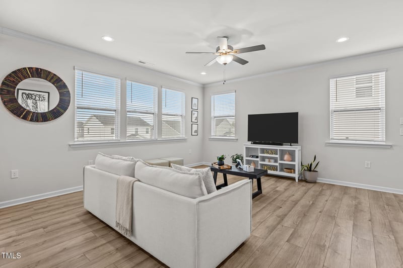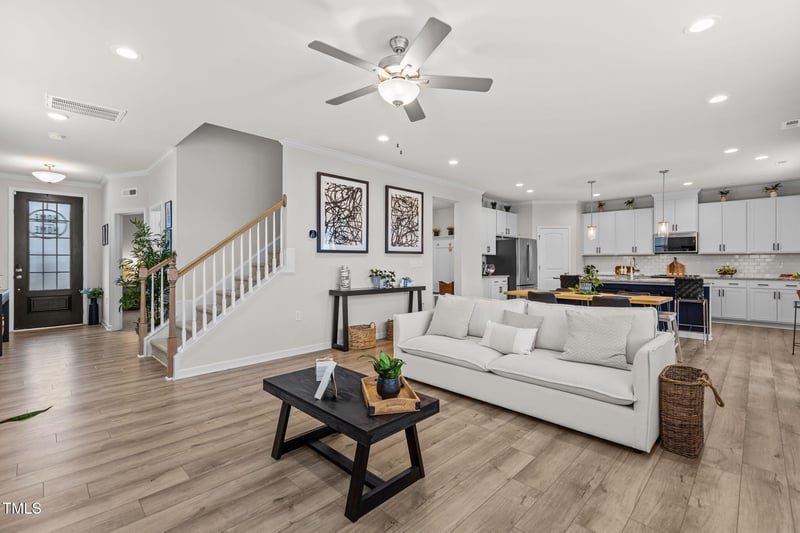 Listing details for 25 Hartford Ln, Fuquay Varina, NC 27526 : Move-In Ready Two Story with First Floor Guest Suite. Welcome home to this beautifully maintained two-story gem, just over three years old and ready for immediate move-in! Designed for modern living, the open-concept first floor features nine foot ceilings, an abundance of windows for natural lighting, and a seamless flow between the spacious living room, dining area, and contemporary kitchen. A highly sought after first floor bedroom and full bath provide convenient accommodations for guests, multigenerational living, or a home office option.