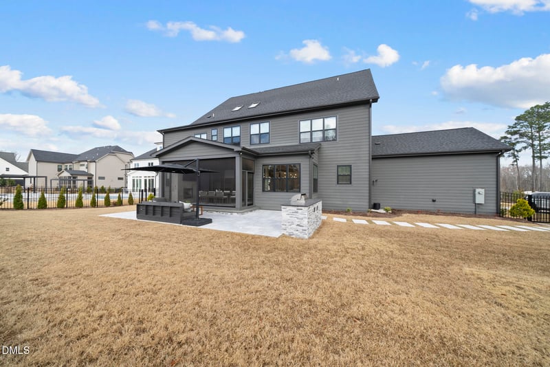 Listing details for 2513 Silas Peak Ln, Apex, NC 27523 : Absolutely stunning custom-built home tucked away on a cul-de-sac lot, showcasing exceptional craftsmanship, luxurious modern finishes, and striking curb appeal. Perfectly situated in highly desirable West Cary, this remarkable residence also features a rare four-car garage and a thoughtfully designed open floor plan that blends elegance with everyday functionality. Step inside to find abundant natural light, wide-plank white oak hardwood floors, designer lighting, custom window treatments, and exquisite millwork throughout. The main level centers around a spectacular chef's kitchen featuring a large quartz waterfall island with seating, high-end GE Monogram appliances, and a separate scullery complete with dual wall ovens and an additional dishwasher. A wet bar and butler's pantry enhance the home's entertaining potential, all overlooking a spacious family room highlighted by coffered ceilings, surround sound, and a gas fireplace framed by a dramatic floor-to-ceiling quartz surround with custom built-ins. Sliding glass doors lead to a stunning screened porch with a gas fireplace, skylights, and Phantom screens, creating a seamless transition to the outdoor living area. The expansive patio with a built-in grill island overlooks a beautifully landscaped, fenced backyard--perfect for relaxing or entertaining. Additional main-level highlights include a formal dining room, private office, guest suite with en-suite bath, and a functional mudroom. Upstairs, the luxurious primary suite offers a serene retreat with a spa-inspired bath featuring dual floating vanities, an oversized multi-head shower with frameless glass enclosure, a soaking tub, and a custom-designed walk-in closet. The second floor also includes three generously sized secondary bedrooms, two full baths, a convenient laundry room, and a large bonus room with surround sound. The expertly finished third floor mirrors the quality and craftsmanship of the main levels and offers incredible versatility with a loft, additional bedroom, full bath, exercise room, and a finished storage area. Additional features include professionally designed landscape lighting, a home security system, and a custom holiday lighting package tailored specifically for the home.