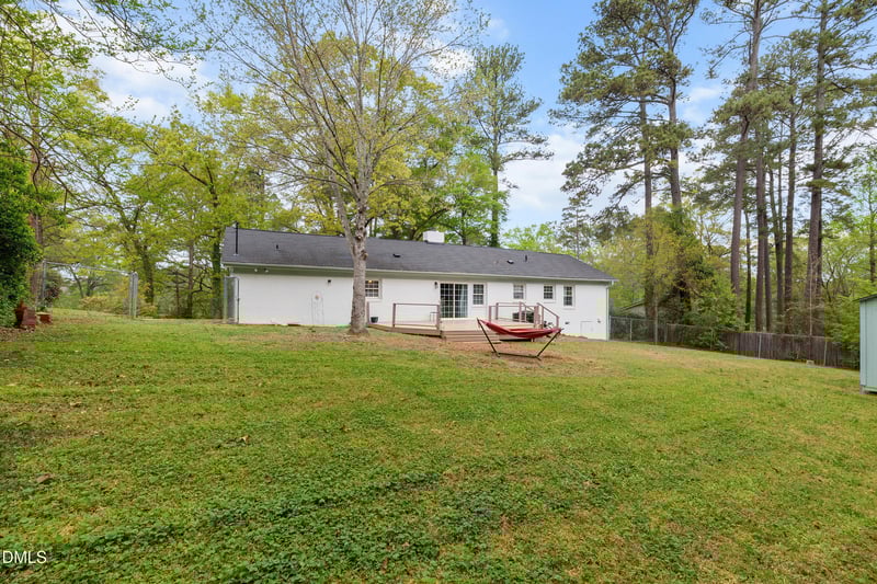 Listing details for 2605 Albemarle Ave, Raleigh, NC 27610 : Completely reimagined and beautifully renovated with the latest trend setting details, this 3-bedroom, 2-bath brick ranch offers modern living with a peaceful water view. Thoughtfully redesigned with a more contemporary, open floor plan, this home features a seamless flow between the spacious living room, dining area and inviting family room with remote controlled fireplace. Fresh interior and exterior paint provide a crisp, move-in ready feel, while the renovated kitchen shines with new cabinetry (including convenient pull-out shelving), granite countertops and a full suite of stainless steel appliances. Step outside onto an expansive back deck with cable railing, ideal for gatherings, grilling or simply relaxing. The fenced backyard offers privacy for pets and play. The serene water view adds a special touch to this already charming property. Additional features include a carport with parking pad and a lovely yard, all just minutes from I-440 and downtown Raleigh. Tucked into a quiet, established neighborhood this home truly feels like an oasis and a wonderful place to call home.