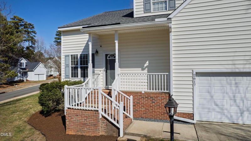 Listing details for 2617 Farlow Gap Ln, Raleigh, NC 27603 : Inviting and easy to live in, this 3 bedroom, 2.5 bath home offers a great layout with tasteful updates. The vaulted ceilings bring openness to both the family room and primary suite, with a cozy gas fireplace anchoring the family room. The kitchen features a large island ideal for cooking and entertaining. The main level is finished with durable hardwood-style tile designed for everyday practicality. Upstairs, a built-in desk provides a tucked-away workspace, and generously sized bedrooms offer room to spread out. With brand new carpet throughout and neutral paint colors, this home is move-in ready. Enjoy a fenced backyard and patio for low-maintenance outdoor living, plus a two-car garage and quick interstate access for an easy commute.