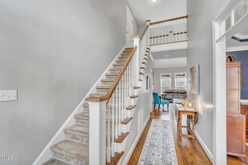 Listing details for 2628 Forestbluff Dr, Fuquay Varina, NC 27526 : Former Custom Parade Home with a main-level Primary Suite in sought-after Crooked Creek. Refinished hardwoods throughout the main level. Formal dining with tray ceiling and wainscoting. Bright two-story family room with gas-log fireplace and custom built-ins. Updated kitchen with white cabinetry, under-cabinet lighting, corian countertops, tile backsplash, newer stainless appliances, garbage disposal, hardware, and lighting. Spacious first-floor Primary Suite with tray ceiling, sitting area, and fireplace. Renovated ensuite with dual vanities, tiled shower with dual rainheads, water closet, linen storage, and walk-in closet with custom shelving. Upstairs offers two bedrooms, large bonus room with closet (currently used as a 4th bedroom), oversized walk-in attic, and updated hall bath. Roof (2023), water heater (2022). Enjoy refinished deck and stone patio overlooking wooded backyard with stream. 2-car garage with workbench, expanded driveway, invisible fence, ADT, Ting internet. Community pool, tennis, trails, and playgrounds. Close to parks, shopping, dining, 540, and 15 miles to Downtown Raleigh.