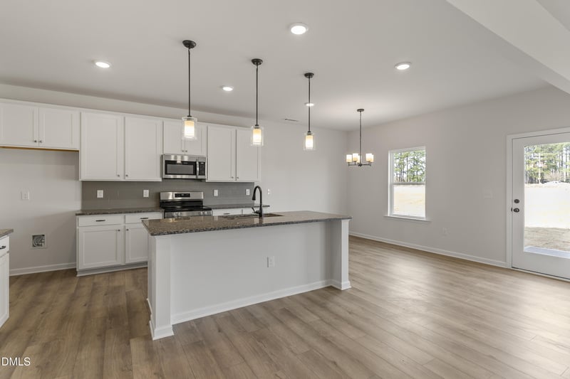 Step inside to an open and inviting family room enhanced by extra windows that fill the space with natural light. Cozy up on cool evenings by the wall-mounted fireplace, surrounded by elegant luxury vinyl plank flooring that spans the entire main level.