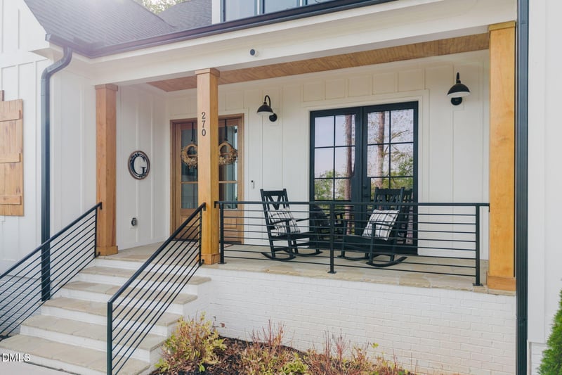 Listing details for 270 W Beech Slope Ct, Chapel Hill, NC 27517 : This beautifully appointed home in sought-after Westfall blends modern farmhouse design with thoughtful custom upgrades throughout. A welcoming elongated front porch sets the tone, with elegant French doors leading into both the private study and the exterior space, creating a seamless indoor-outdoor flow.