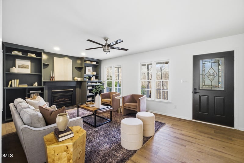 Listing details for 2705 Brians Ln, Hillsborough, NC 27278 : Completely renovated and truly rare for the area, this beautifully updated home sits on a private 1.42-acre lot offering space, privacy, and move-in-ready condition that is increasingly hard to find so close to town. Thoughtfully redesigned with a smart 1,631-sq-ft single-level layout, the home features 3 bedrooms and 2.5 bathrooms, including a spacious primary suite with walk-in closet and private bath, complemented by additional well-proportioned bedrooms ideal for guests, home office, or flex use. The interior shines with new LVP flooring throughout, all-new cabinetry, marble countertops, updated lighting, and new appliances, creating a bright, modern feel while maintaining comfortable flow between the living, dining, and kitchen areas. The inviting family room opens to the kitchen and dining space, perfect for everyday living and entertaining, while large windows bring in abundant natural light and peaceful wooded views. Outside, enjoy a covered front porch, rear deck, expansive yard, large driveway, and a detached 14x24 shed/workshop—ideal for storage, hobbies, or equipment—making the property as functional as it is attractive. Major systems have been addressed with a 2018 heat pump, vinyl windows and siding, and recently pumped and inspected well and septic, offering peace of mind. Tucked away yet conveniently located with easy access to downtown Hillsborough, I-40/I-85, and surrounding Triangle amenities, this is a rare opportunity to own a fully renovated home with substantial land, privacy, and accessibility—homes like this do not come along often.