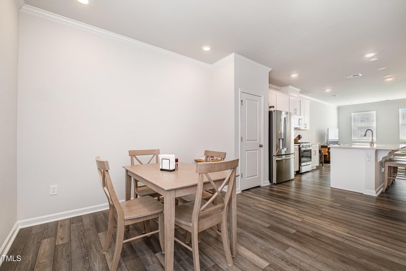 Listing details for 2708 Chert Ln, Raleigh, NC 27610 : Discover Modern Luxury, thoughtfully designed, maintenance free living in this nearly new townhome. Just minutes from Downtown Raleigh and White Oak Shopping center, this bright open floorplan features 3 bed / 3.5 baths + Garage. The chef-inspired kitchen showcases gas cooking, gleaming quartz countertops, sleek new SS appliances, and a large island that opens to the dining and living areas—perfect for everyday living and entertaining. Durable LVP flooring enhances the main level. The owners retreat features a spa-style bath with dual sinks and a tiled walk-in shower. The secondary suites have private full baths. The Trace at Olde Towne is a master-planned community offering resort-style amenities including indoor heated and outdoor pools, clubhouse with fitness center and game room, tennis and pickleball courts, soccer field, playground, dog park and walking trails.