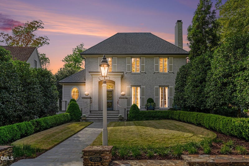 Listing details for 2709 Lochmore Dr, Raleigh, NC 27608 : Welcome to 2709 Lochmore Drive, a stunning French-European residence featured in the March/April 2023 issue of Midtown Magazine. Ideally situated in the heart of Fallon Park, this exceptional home was expertly renovated in 2016 by John Sanders and thoughtfully designed by Carter Skinner, blending timeless architecture with elevated modern living. Offering approximately 3,625 square feet, this 4-bedroom, 4.5-bath home showcases refined craftsmanship and intentional design throughout. A gracious foyer with stone flooring, intricate millwork, and a sweeping curved staircase creates a striking first impression and sets the tone for the sophisticated interiors that follow. Hardwood floors, extensive custom paneling, designer lighting, and abundant natural light enhance every primary living space. The open-concept family room and kitchen serve as the heart of the home, anchored by a fireplace with built-ins and a beautifully appointed chef's kitchen featuring quartz countertops, a center island, white cabinetry, Sub-Zero refrigerator, Wolf range, and a butler's pantry. The adjoining breakfast room is filled with natural light, with oversized windows overlooking the lush, professionally landscaped grounds. A versatile first-floor study or guest suite with a full bath provides flexibility for modern living. Upstairs, the second level offers four additional bedrooms, three full baths, and a dedicated laundry room, delivering both comfort and functionality. The outdoor living experience is equally exceptional, with professionally designed gardens by Frank Liggett featuring zoysia grass, irrigation (front and back), landscape lighting, and extensive plantings. Multiple entertaining spaces include a partially covered bluestone patio, a gravel fire pit patio, and a covered walkway leading to a detached two-car carport with storage. Additional highlights include a Generac whole-house generator and a steep, hipped roofline that beautifully epitomizes classic European architecture. Located just minutes from Five Points, this turnkey residence offers a rare combination of location, design, and craftsmanship--truly one of the most compelling offerings inside the Beltline