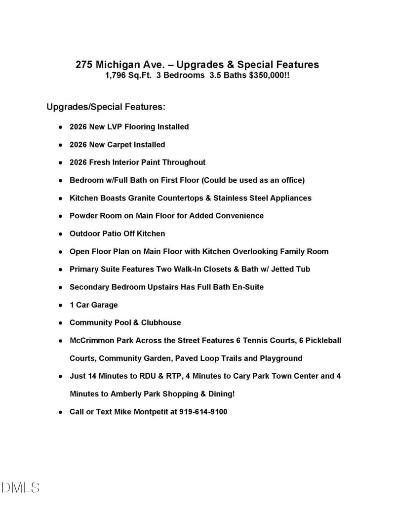 Description of 275 Michigan Ave, Cary, NC 27519