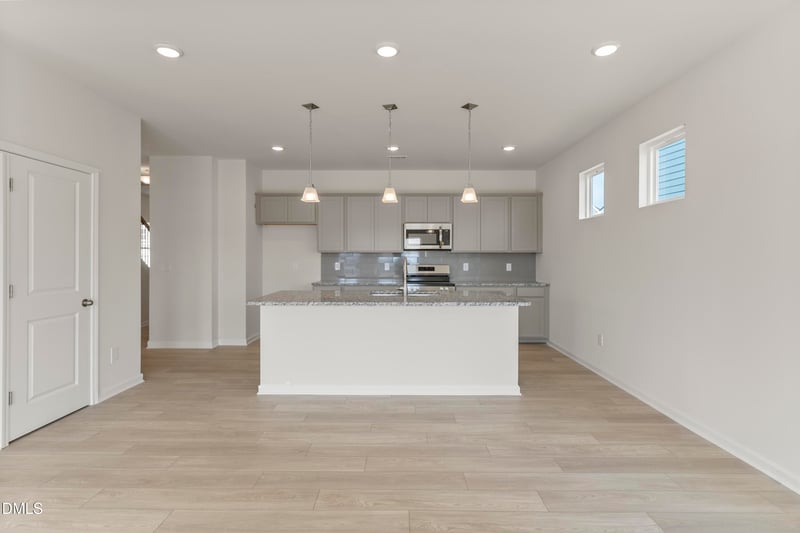 At the heart of the home, the kitchen seamlessly connects to the family room, creating an inviting open layout ideal for everyday living and entertaining. Thoughtful upgrades include additional windows for abundant natural light, recessed LED lighting, and luxury vinyl plank flooring throughout the first floor. The kitchen showcases granite countertops, 36-inch cabinets with crown molding, stainless steel appliances, a large island with seating for four, and a walk-in pantry for extra storage.