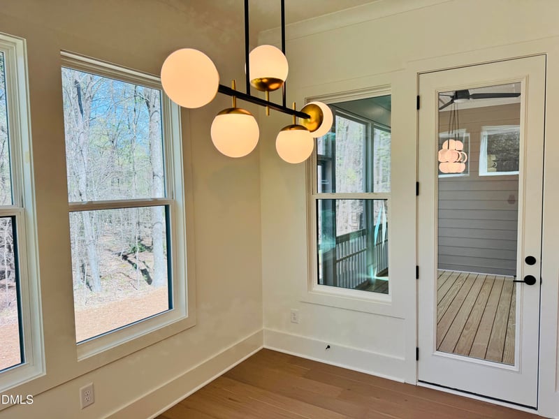 Listing details for 2806 Pathway Dr, Chapel Hill, NC 27516 : Combine a painted brick house with largest yard in the neighborhood, private yard (end of cu de sac) and modern finishes in new construction, and it can't help but emanate The-Coolest-house-on-the-Block Vibes! The beloved Traylee floor plan by J. Fuller Homes features a gourmet kitchen with white cabinets with blue tile backsplash and island cabinets, white farmer sink in the extended kitchen island with quartz countertops, gas cooktop, wall oven and microwave, 10' ceilings on the main level, warm wood flooring, formal office and formal dining room, butler pantry with cabinets and walk-in pantry, breakfast nook with chandelier lighting, large living room with gas logs fireplace and a triple slider door which leads to a large screened in porch overlooking the protected conservation woods of the HOA open space. A paver patio increases your outdoor living space. A bedroom with ensuite bathroom and a drop-zone leading to the garage round out the main level of the home, while upstairs features the gorgeous primary bedroom with tray ceiling and windows looking into the tree tops, a primary bathroom with double tiled shower, double vanity, bronze plumbing fixtures, and a huge walk-in closet. 2 bedrooms with Jack-and Jill bathroom, a bedroom with en suite bathroom, and a large bonus room make the upstairs a retreat haven, including a laundry room with sink, cabinets and modern tiled flooring. The Sanderway neighborhood sits just a few steps off of the Carrboro Greenway, great walking along Hillsborough road to the heart of Carrboro, and some of the best road biking along Dairyland Road just a few minutes ride away! Sanderway is so close to Carr Mill Mall, and Weaver Street Market, UNC Hospital (12 min), Duke Hospital (28 min) and RDU airport (29 min). Come feel the love of new construction in the heart of all the you love about Chapel Hill and Carrboro.
