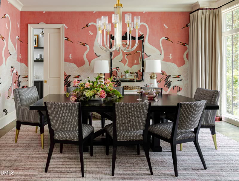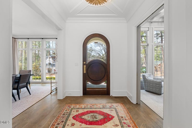 Listing details for 2809 Grant Ave, Raleigh, NC 27607 : A rare offering, this exceptional residence blends timeless architecture with striking, design-forward interiors in one of Raleigh's most sought-after locations. Offering 5 bedrooms, 6 full bathrooms, and 2 powder rooms across more than 7,500 square feet, including a detached guest house, the home delivers both scale and intention in every space. The brick exterior, copper gas lanterns, bluestone walkways, and private courtyard create a sense of arrival that is both elegant and understated. Inside, the home unfolds with a layered, highly curated aesthetic, where custom millwork, marble surfaces, designer lighting, and bold yet refined selections come together seamlessly. At the center of the home, the kitchen is as functional as it is beautiful, anchored by custom cabinetry, marble countertops, a Wolf range, and Sub-Zero refrigeration, with a fully equipped scullery and wine cellar tucked just beyond. A dramatic cocktail bar adds a distinctive focal point, designed for both everyday living and elevated entertaining. The main level owner's suite is quietly set apart, offering a private retreat with direct access to the veranda, a beautifully finished bath, and expansive walk-in closets. Formal and informal living spaces are thoughtfully balanced, creating a home that lives comfortably while still impressing at every turn. Upstairs, generously sized en suite bedrooms, a media and bonus room with bar, and additional laundry and storage continue the home's commitment to both comfort and functionality. The outdoor living experience is equally considered, with a covered veranda featuring retractable screens and ceiling heaters, a built-in grilling area, and a fireside lounge. The heated saltwater pool and spa overlook the grounds, while the detached guest house offers a private space complete with kitchenette, living area, and full bath. Meticulously maintained and executed with an exceptional level of detail, this is a home that stands apart, offering a refined and highly intentional living experience.