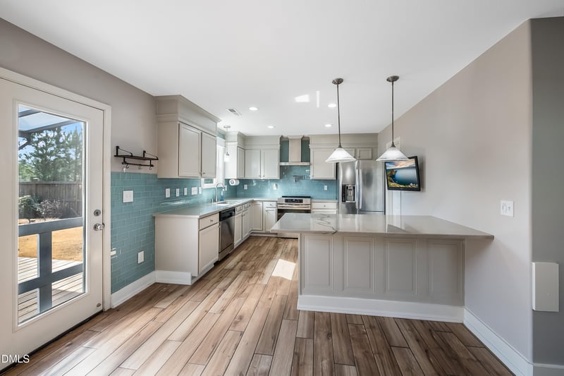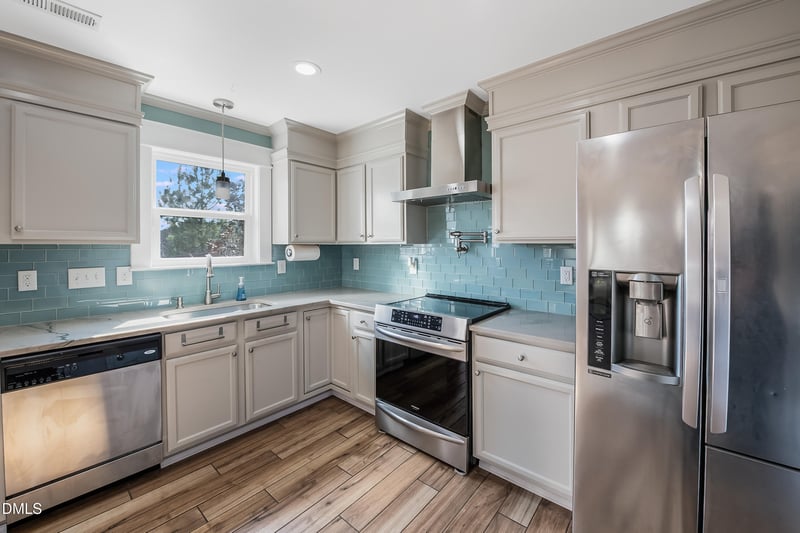 Listing details for 2830 Tulip Poplar Cir, Durham, NC 27704 : Experience elevated living in this impeccably maintained one owner home nestled in Northeast Durham. Built in 2014, this 1,805 square foot residence showcases a sophisticated blend of comfort and upscale design, featuring a gourmet kitchen with quartzite countertops, pot filler, and high-end stainless steel appliances. Rich wood-look tile flooring adds warmth and elegance, while the electric fireplace creates a stylish focal point for the main living area. Upstairs, all three bedrooms are privately situated alongside a spacious loft offering refined flexibility for work or leisure. The oversized fenced backyard is beautifully landscaped and enhanced by a storage shed and covered patio with awning, creating an inviting setting for effortless outdoor living. Ideally located near major highways and the airport, this exceptional home delivers convenience wrapped in style and quality.