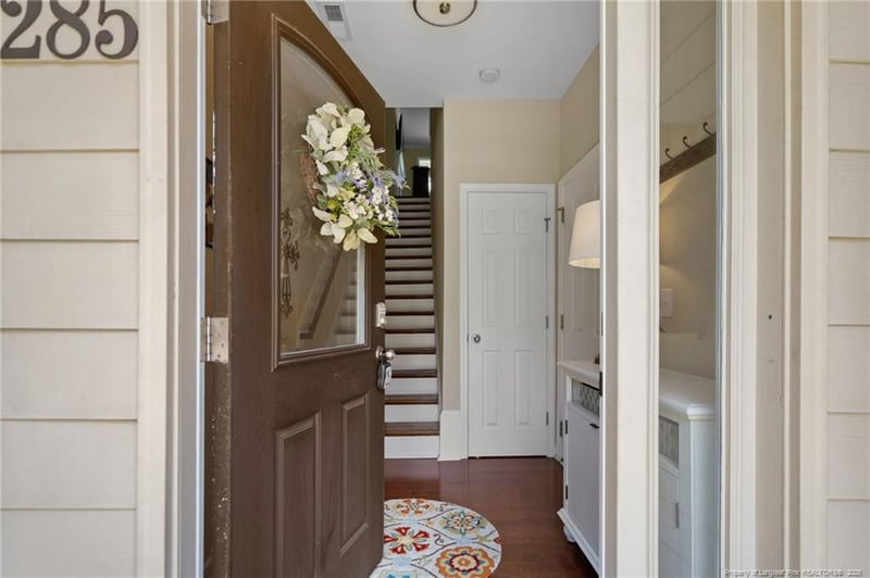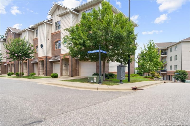 Listing details for 285 Hugh Shelton Loop, Fayetteville, NC 28301 : This end unit loft offers a rare perk. You can watch fireworks from your own private balcony without neighbors blocking the show, just front row seats at home. You are also an easy walk to downtown Fayetteville, putting dining, events, and nightlife right at your fingertips.Inside, the open concept layout features a spacious living room with an electric fireplace that flows into the dining area and modern kitchen with granite countertops and a large pantry. One detail you will love is the hardwood stairs instead of carpet, which adds to the upscale and low maintenance feel.Upstairs, you will find two bedrooms, each with its own walk in closet and private bathroom, with the laundry conveniently located in the hall. The oversized garage has stained concrete floors and painted walls and offers great flexibility. It is large enough for two vehicles or a car plus a home gym or workshop. The garage also opens to a private covered patio, perfect for a shaded outdoor hangout.
