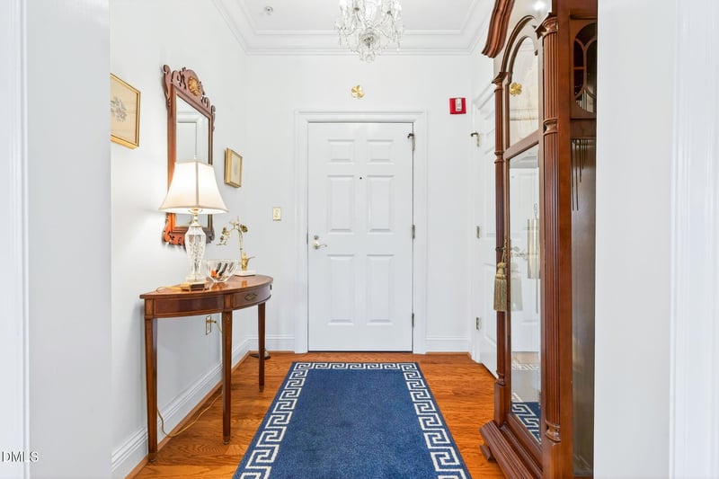 Listing details for 2901 Market Bridge Ln #205, Raleigh, NC 27608 : This 2 bedroom, 2 bathroom condo offers turnkey living in the highly desirable Gardens on Glenwood! Enjoy the gleaming hardwoods, beautiful millwork, plantation shutters and fresh paint. The kitchen has been updated with new quartz counters and backsplash, lacquered cabinets, new Wolf gas cooktop, JenAir dishwasher and drawer microwave. The opening between the kitchen and living room has also been enlarged to create more connection between the spaces. The primary suite features a huge walk-in closet and generous bathroom with a tub, shower, double vanity and commode closet. The secondary bedroom and hall bathroom are on the other side of the unit, offering a bit of separation and privacy. The hall bathroom has been tastefully updated with new wallpaper, countertop, faucet, knobs and commode. Enjoy the covered balcony, access to Glenwood Village, and secure parking. The Gardens on Glenwood community includes a pool, fitness center, cutting garden and more.