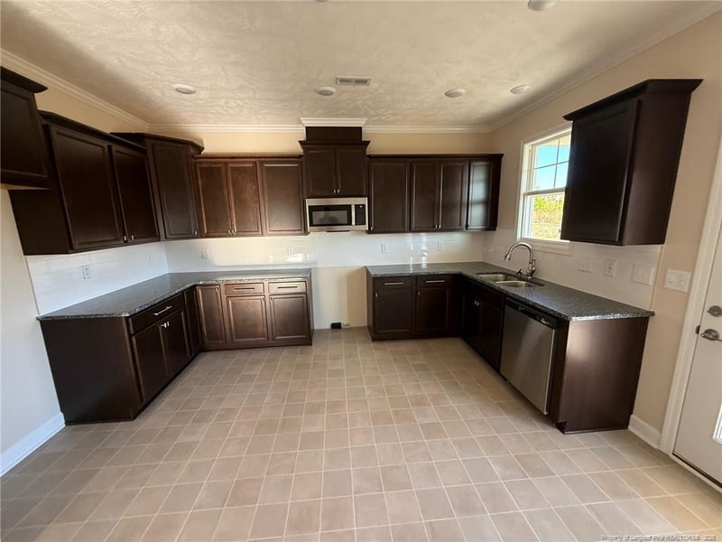 Listing details for 2905 Currawond St Lot 222, Fayetteville, NC 28304 : Beautiful 2-story home in Georgetown Estates, located in the highly desired Jack Britt School District, offering nearly 2,700 sq. ft. of heated living space with 4 bedrooms, 2.5 baths, and a 2-car garage perfect for a growing family. As you enter, you’ll appreciate the spacious layout, featuring a large family room with beautiful laminate flooring and an electric fireplace, as well as a formal dining room with a tray ceiling and wainscoting. The kitchen is a standout with granite countertops, stainless steel appliances including an electric range, refrigerator, microwave/hood, and dishwasher a pantry, and ample cabinet space. Just off the kitchen is a convenient laundry room with wall cabinets above the washer and dryer. Upstairs offers a large open media room and a luxurious master suite with a walk-in closet, dual vanities with cultured quartz countertops, a garden tub, and a separate shower. Three additional generously sized bedrooms and a full bath with cultured quartz counters complete the upper level. Outdoor living includes an 8x17 covered rear porch and an 8x12 patio, ideal for entertaining, plus an irrigation system to keep your lawn green and healthy. Built Strong by Armstrong, this home combines comfort, space, and quality craftsmanship in one exceptional package. Estimated completion: March 2025.
