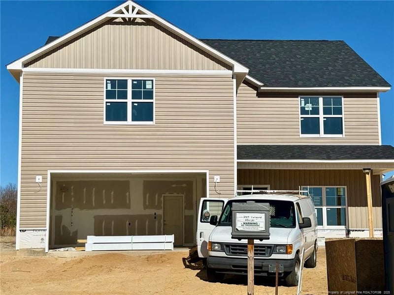 Listing details for 2905 Currawond St Lot 222, Fayetteville, NC 28304 : Beautiful 2-story home in Georgetown Estates, located in the highly desired Jack Britt School District, offering nearly 2,700 sq. ft. of heated living space with 4 bedrooms, 2.5 baths, and a 2-car garage perfect for a growing family. As you enter, you’ll appreciate the spacious layout, featuring a large family room with beautiful laminate flooring and an electric fireplace, as well as a formal dining room with a tray ceiling and wainscoting. The kitchen is a standout with granite countertops, stainless steel appliances including an electric range, refrigerator, microwave/hood, and dishwasher a pantry, and ample cabinet space. Just off the kitchen is a convenient laundry room with wall cabinets above the washer and dryer. Upstairs offers a large open media room and a luxurious master suite with a walk-in closet, dual vanities with cultured quartz countertops, a garden tub, and a separate shower. Three additional generously sized bedrooms and a full bath with cultured quartz counters complete the upper level. Outdoor living includes an 8x17 covered rear porch and an 8x12 patio, ideal for entertaining, plus an irrigation system to keep your lawn green and healthy. Built Strong by Armstrong, this home combines comfort, space, and quality craftsmanship in one exceptional package. Estimated completion: March 2025.