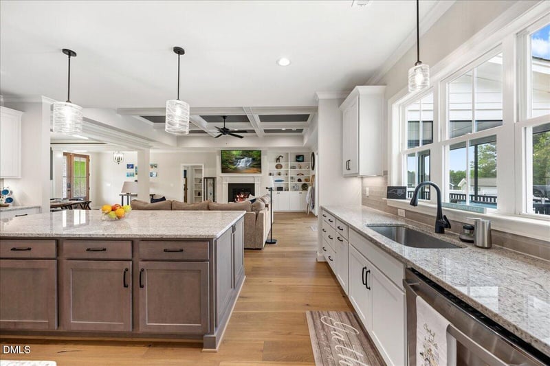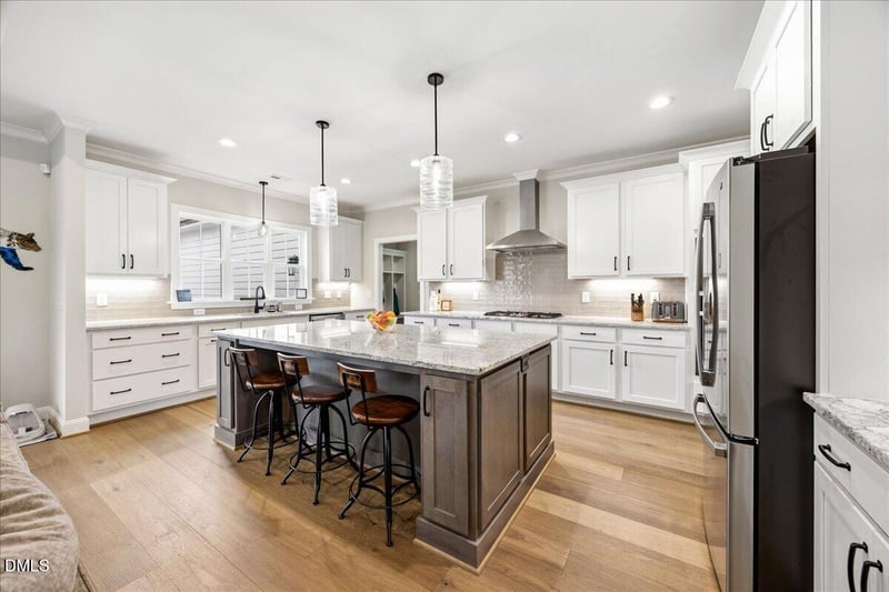 Listing details for 30 Old Garden Ln, Youngsville, NC 27596 : Welcoming an extraordinary Parade of Homes Gold Medal Winner that offers more than the little extras and will certainly leave a lasting impression. This stunning former model home features an award winning design and a wealth of luxury details. Heavy moldings, abundant character, an open floor plan, wide plank hardwood floors, a coffered ceiling, and mostly main level living. The kitchen is anchored by a large island and highlights a tile backsplash, an oversized walk in pantry, and views from your sink that brings memories of your favorite vacation as you overlook your private backyard and saltwater pool. The main level primary ensuite offers a tray ceiling, a zero entry shower, water closet, and a custom dream closet. A feature favorite is access from the primary closet directly into the laundry room while also having access from the hallway as well. Adding to the resort lifestyle feeling are a wine room hidden behind a barn door, a fourth bedroom get away with bath number three, and double sliding doors leading to the large screened porch, upgraded Trex deck, and the heated saltwater pool. A spacious, cool decking patio surrounds the pool, offering excellent views of the lush landscaping. Cool decking reduces the patio heat by 38%. Other upscale components include a three car garage, large walk in attic, generator, an irrigation system, shutters, and upgraded interior and exterior lighting. Nestled in a quiet setting while providing nearby conveniences Wake Forest is 15 minutes away, and shopping, food and grocery just 12 minutes. ''The difference between ordinary and extraordinary is that little extra.'' - Jimmy Johnson.