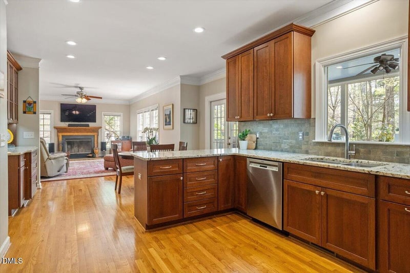 Listing details for 300 Autumn Dr, Chapel Hill, NC 27516 : Meticulously maintained and thoughtfully updated, this home is a true gem in desirable Williams Woods at Cates Farm. Ideally located in the walk zone for McDougle Elementary and Middle Schools and just steps to the Carolina North trails, it offers both convenience and connection to nature. Step into the welcoming foyer and find site-finished hardwood floors and crown moldings through most of both levels. To the right, a charming living or music room flows seamlessly into the spacious dining room. The beautifully renovated kitchen (2017) features American cherry cabinetry, granite countertops, and stainless steel appliances, including a dual fuel range with 5 gas burners, and a Bosch dishwasher. The kitchen opens to a sunny breakfast nook with built-in cabinetry and a comfortable family room anchored by a wood-burning fireplace. A stylishly updated powder room is just down the hall. Upstairs, the spacious primary suite boasts a vaulted ceiling and a stunning renovated bath (2018) with tile flooring, dual vanities with quartz countertops, a freestanding tub, water closet, dual walk-in closets, and a luxurious tiled shower with rainfall head, handheld sprayer, and frameless glass door. Convenient walk-in storage is located just off the suite. Just down the hall, find three additional generously sized bedrooms and a hall bath freshened with updated lighting, mirror, wainscoating detailing, and painted cabinets. Completing the second level is the very large bonus room offering exceptional flexibility. Outdoors, enjoy the spacious screened porch and deck overlooking the backyard - a gardener's delight, featuring established ferns and woodland shrubs. Not to be missed is the big conditioned workshop on the lower level, complete with a built-in workbench and plentiful storage. Bike to downtown Carrboro and take in its vibrant restaurants, shops, and markets. See the Special Features and Updates sheet for a full list of improvements. Come experience the good life in Chapel Hill and Carrboro!