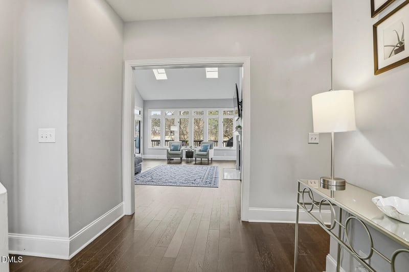 Listing details for 3005 Fownes Ct, Raleigh, NC 27613 : Perfectly positioned overlooking the 11th fairway of Wildwood Green, this beautifully maintained home offers golf course views and an exceptional blend of comfort and convenience. Inside, hardwood floors extend throughout the home, creating a warm and cohesive living environment. The kitchen is thoughtfully designed with stainless steel appliances, granite countertops, a center island with seating, recessed lighting, a pantry, and a bright, sunny dining area. The dramatic two-story family room is filled with natural light and features a fireplace flanked by built-ins along with two skylights. A separate living room provides additional flexibility for entertaining or everyday living. The main-floor owner's suite serves as a private retreat, complete with a second fireplace, walk-in closet, and an en-suite bath showcasing a double vanity, jetted tub, and tiled shower. Additional main-level highlights include a well-equipped laundry room with cabinets, sink, closet, and direct garage access, along with a convenient powder room. Upstairs, three additional bedrooms and a full hall bath offer comfortable accommodation for family or guests. Tucked away on a quiet cul-de-sac, the property features an attached garage, a welcoming covered front porch, and a spacious deck ideal for relaxing or entertaining. HOA dues include landscaping, allowing for low-maintenance living, while residents enjoy access to outstanding community amenities including a clubhouse, pool, trails, tennis, and pickleball courts. Golf memberships are also available. The location is highly desirable, just minutes from Six Forks Station, Whole Foods Market, Falls Lake, and with easy access to I-540.