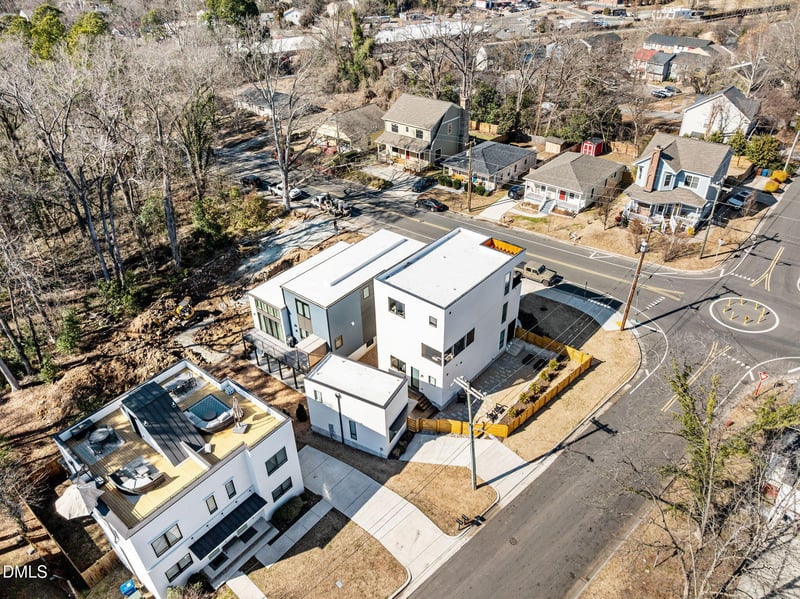 Listing details for 301 Enterprise St, Durham, NC 27707 : Designed by Evening Studios Architecture, this 2363 sq ft home and 301 sq ft tiny home are just steps from the American Tobacco rails to trails and a 15 min walk to downtown Durham. Walk to Loaf bakery in the morning, or to a Durham Bulls game or DPAC in the evening. Rent the tiny home, either long term or Air BnB, or use it as a guest home, detached office, or art studio. High end finishes throughout including Marvin windows, site finished hardwoods, white oak cabinets, quartz tops, and more. City views from the 3rd floor. 4 bedrooms and 3.5 baths in main house, as well as additional loft bedroom and full bath in the tiny home. Low-maintenance fenced yard and landscaping. Property has been previously rented long term at $4500/month. No lease currently and can accommodate a quick closing. All appliances convey. Don't miss this beautiful modern home!