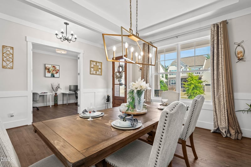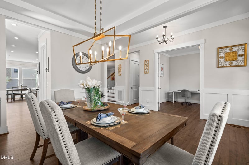Listing details for 301 Silent Bend Dr, Holly Springs, NC 27540 : Built in 2022 by Drees Homes, this impeccably maintained 5-bedroom, 4.5-bath residence blends timeless design, generous space, and an exceptional location. Warm neutral finishes, abundant natural light, and a thoughtfully curated floor plan create an inviting yet sophisticated atmosphere throughout.