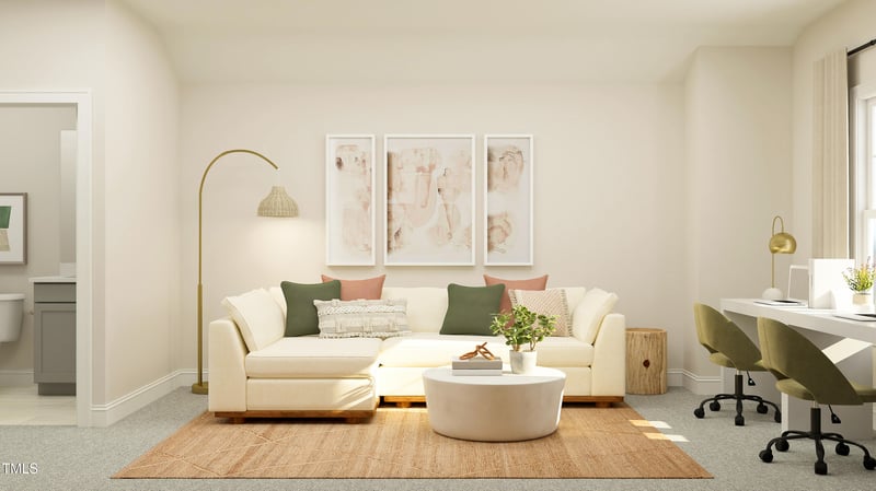 Listing details for 3017 Sandy Bluff Rd, Raleigh, NC 27616 : This thoughtfully designed single-level home offers comfort and flexibility. Off the foyer, you'll find two secondary bedrooms and a full bathroom. The open-concept layout seamlessly connects the kitchen, dining, and living areas, with easy access to the outdoor patio--perfect for entertaining or everyday living. The private owner's suite is tucked into the rear of the home and features a spa-inspired bath and walk-in closet. This home also includes the optional second floor with a loft, bringing the total to 4 bedrooms and 3 full baths. Prices, dimensions and features may vary and are subject to change. Photos are for illustrative purposes only.
