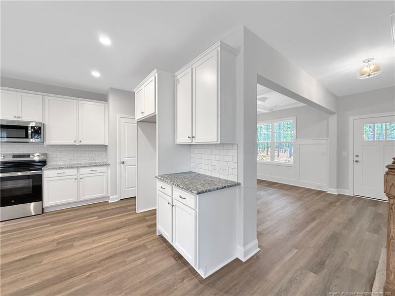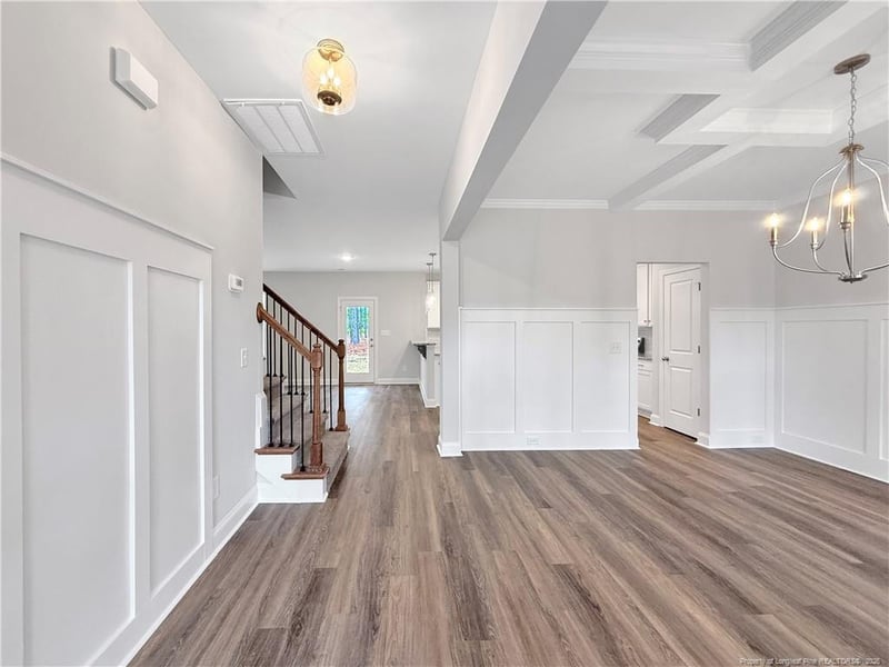Listing details for 3019 Fields Rd Lot 5, Fayetteville, NC 28312 : Certain home selections are still available for the buyer to personalize—act quickly before choices are finalized! This beautiful home is situated on a generous 3.124-acre lot outside of a subdivision, providing exceptional privacy and no HOA restrictions. The Bradshaw floor plan by LA Residential offers 5 bedrooms, 2.5 bathrooms, and a spacious 3-car garage, covering approximately 2,469 square feet. Upon entry, you are welcomed by a foyer leading to a formal dining room adjacent to the well-appointed kitchen. The kitchen features abundant countertop and cabinet space, complemented by stainless steel appliances. A comfortable breakfast nook sits just off the kitchen, seamlessly flowing into the living room, which includes an inviting electric fireplace. The primary suite, located on the second floor, is a luxurious retreat with dual vanities, a soaking tub, separate shower, and a generous walk-in closet. The upper level also includes four additional bedrooms, a full bathroom with dual vanities, and a conveniently placed laundry room. Preferred lending is available through Alpha Mortgage Advantage.