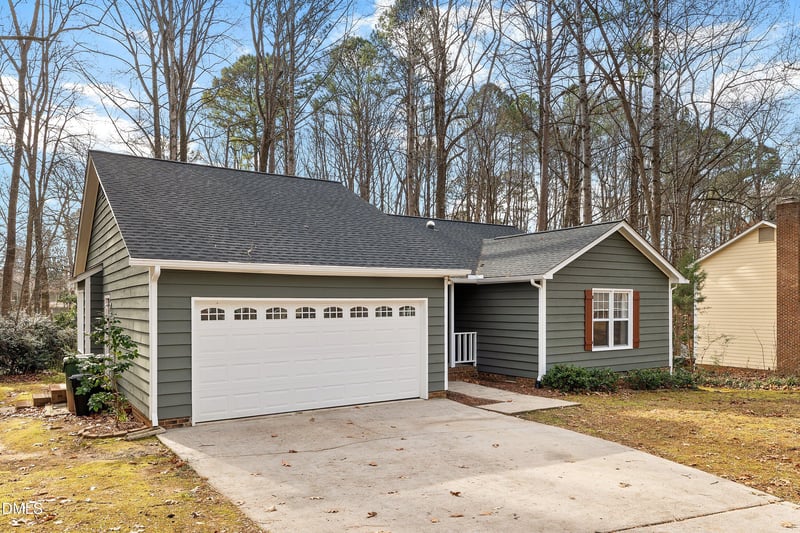 Listing details for 303 Trappers Run Dr, Cary, NC 27513 : Incredible opportunity to secure a single-level home with a GARAGE in CARY for $430,000 with NO HOA. The floorplan of this home is fabulous with a dedicated foyer and dining room, 3 bedrooms, 2 full baths and a deck that overlooks an expansive backyard bordering a natural area. Retro fans will love some of the home's unique details: A window seat (with storage) and a stained-glass light fixture in the dining room, a mini solarium in the kitchen window, a match box w/striker plate on the fireplace surround, parquet flooring in the foyer and cedar siding exterior. For the practical-minded, there's a workbench, shelving, peg board and utility sink in the 2-car garage, a shed in the backyard and vaulted ceilings that make the living room live large. The sizable front yard and forest green siding gives this home great curb appeal. No HOA makes living in one of the Triangle's most desirable ZIP codes even more attainable.