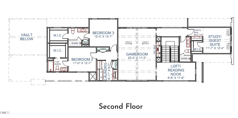 Family room: with gas log fireplace wrapped white glossy tile with a site built mantle, flanking custom built-in cabinets with floating shelves and glass sliders to rear covered porch with custom fireplace! Upstairs features a vaulted gameroom with painted ceiling beams and wet bar, vaulted study with built-in coffee bar area, loft/reading nook and three en-suite bedrooms!