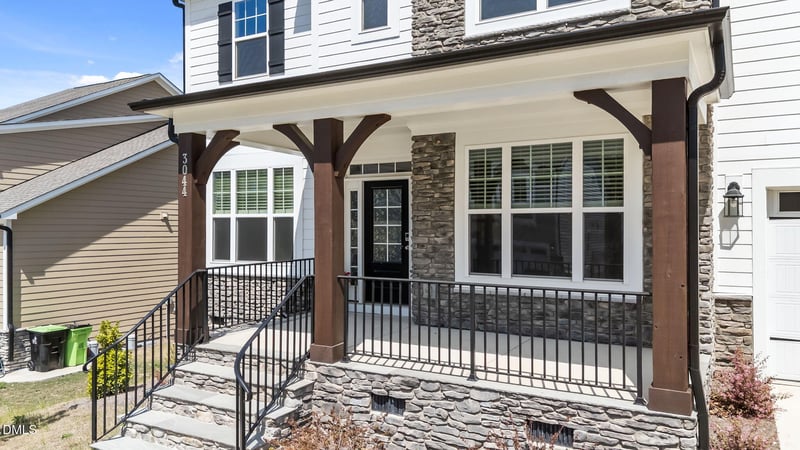 Listing details for 3044 Cave Junction Station, Apex, NC 27562 : Welcome to this stunning , nearly new home situated on a premium 0.36- acre lot with breathaking , unobstructed backyard views of open green space and natural woods. The level backyard offers both privacy and endless possibilities for outdoor living. This spacious residence features 5 bedrooms and 4 full bathrooms .including a main-level guest suite, perfect for multi-Generational living or visitinf guests, A private study with elegant French glass double doors provides an ideal work- ffrom - home space. Designed with bith comfort and style in mind the home offers a bringht and airy layout with 9- feet ceilings on both the first and 2nd floors , The expansive living area flows seamlessly into the open -kitchen . Enjoy out door living at its finest with a Dual Deck design- featuring both a screened -in section and an open-are space -indeal for relaxing while taking in the peaceful natural surroundings. Upstairs , you will find a large bonus room and a oversized loft , offering flexible space for a play room or additional living area . The luxurious primary suite is generously sized , complete with a spa-like bathroom and serene long - rang views right from your windows . Every room in thishome is filled with abundant natural light thanks to its desirable north- south orientation , making the entire space feel warm, bright , and inviting .The staircase features an elegant turn with ample natural lighting, adding Architectural charm to the home. This exceptional property combines modern design , functional layout Located in one of the Triangle's fastest- growing area with strong apprecation potential -- this is a rare opportunity combining space privacy and location !