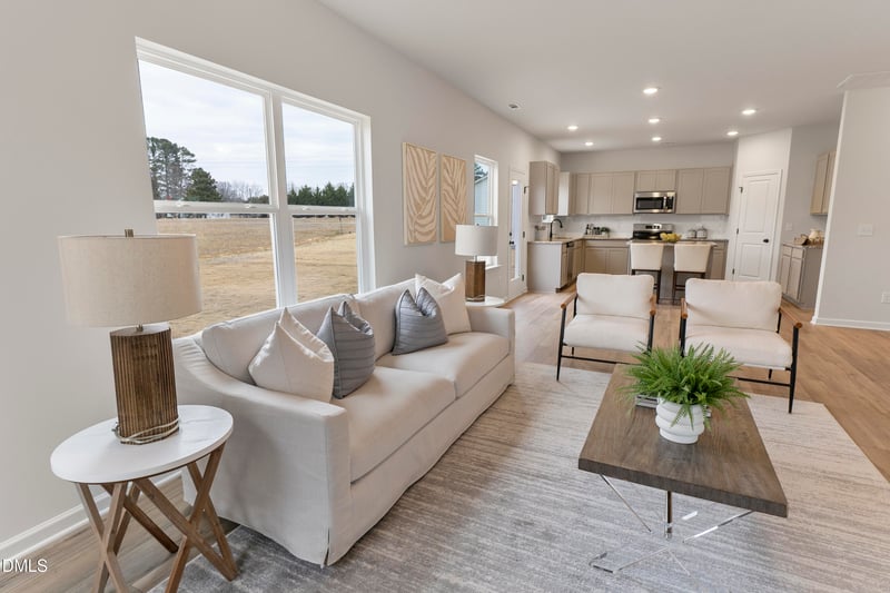 light. We have luxury vinyl plank flooring throughout the entire first floor. This plan is built with an expansive kitchen and we've added the optional island for additional functionality and storage. Showcasing painted cabinets, and an elongated tile backsplash for a modern feel. The kitchen features a dedicated pantry as well as under stair storage which can be used as an overflow pantry space.