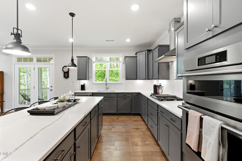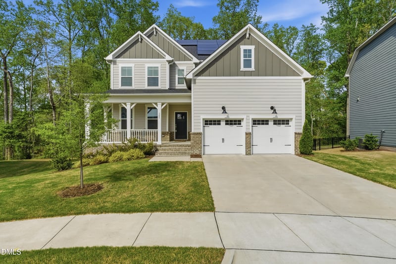 Listing details for 305 Pond Overlook Ct, Knightdale, NC 27545 : Situated on a premium cul-de-sac lot in Glenmere, this 5 bed/5 bath home backs to protected land with tranquil pond views, offering a private, wooded setting that feels like a treehouse from the screened porch. The open-concept layout is filled with natural light and features engineered hardwoods, a main-level guest suite, and a finished third floor with full bath and walk in storage - ideal as a bonus room or additional bedroom. The kitchen is designed for both function and style, complete with a large island, quartz countertops, gas cooktop with hood, pantry, and ample cabinetry. The primary suite offers a spa-like feel with an oversized shower, double vanity, and a custom closet by Closets by Design. Additional highlights include Solar PV panels with a Tesla backup battery delivering significant energy savings, upgraded 240 volt electrical in the garage. Residents enjoy exceptional community amenities, including a clubhouse, Olympic-sized pool with water features, cabana with fireplace, dog parks, green spaces, playgrounds, and sidewalks. Conveniently located near 540/264 and just 20 minutes to downtown Raleigh, this is a home you don't want to miss.