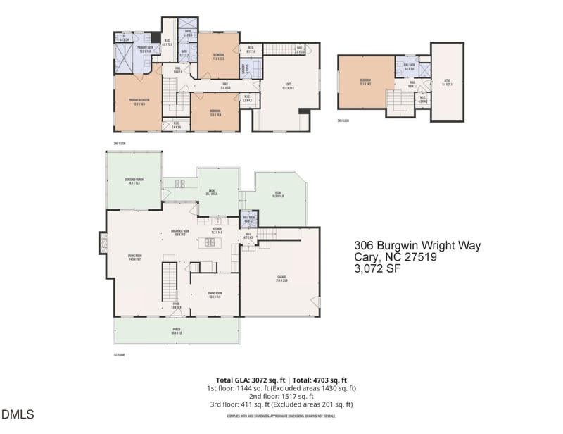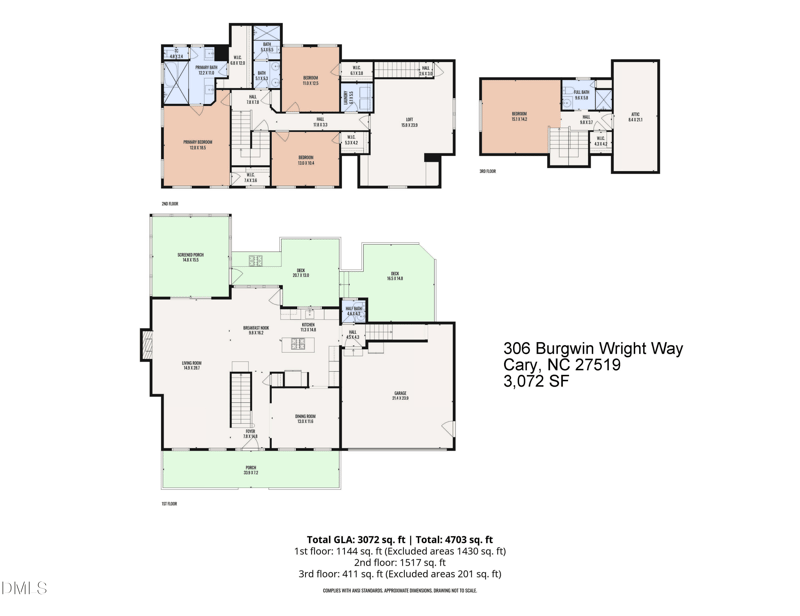 Listing details for 306 Burgwin Wright Way, Cary, NC 27519 : Gorgeous home with a rocking-chair front porch in highly desirable Tatton Place! Step inside 306 Burgwin Wright Way to a thoughtfully designed floor plan ideal for today's lifestyle. The formal dining room flows seamlessly into the kitchen, which overlooks the inviting family room with a gas fireplace, perfect for everyday living. Updated in 2023, the kitchen features a stunning blend of granite and quartz countertops, soft-close cabinetry, sleek newer appliances, and updated lighting and hardware. Upstairs, the spacious primary suite offers a beautifully renovated bath with a walk-in shower, freestanding soaking tub, His & Hers sinks, and modern finishes throughout. This level also includes two additional bedrooms and a versatile bonus/loft space over the garage. The third-floor walk-up provides an additional bedroom with a full bath - ideal for guests, a home office, or teen suite. Step outside to the screened porch, perfect for morning coffee or evening relaxation. The expansive deck features an outdoor kitchen with built-in grill, creating an ideal space for entertaining and al fresco dining, all overlooking a private backyard that backs to the greenway. All windows were replaced in 2023, offering added comfort and peace of mind. Turnkey and truly move-in ready - this home is a rare find. Schedule your private showing today!
