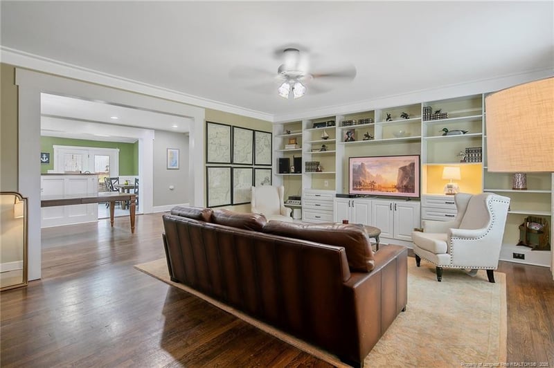 Listing details for 306 Rush Rd, Fayetteville, NC 28305 : Beautifully maintained 1940s HAYMOUNT gem, approximately 3169 sf, meticulously updated and full of charm! Step inside the living room, featuring a masonry fireplace, to original hardwood floors with classic built-in's that set the tone for this exceptional home. The huge, open kitchen with vaulted ceiling and new skylights is the center of this home. You will find abundant cabinets and counter-space, a breakfast area, granite countertops, stainless steel appliances, a separate bar sink and wine fridge—perfect for everyday living and entertaining. The kitchen overlooks a huge formal dining area with beautiful hardwoods.The primary suite is conveniently located on the main level and offers a spacious walk-in closet w/custom built-ins, along with a spa-like bath featuring dual vanities, a tiled shower, and a separate soaking tub. An additional main-level bedroom and bath with a charming claw-foot tub provide flexibility for guests or home office needs. A laundry room with laundry sink completes the main floor.Upstairs, enjoy the vaulted ceiling in a cozy reading nook w/more built-ins, plus a Bonus Rm, 2 well-sized bedrooms, and the upstairs bath w/a large corner tub and separate shower.Relax or entertain in style on the large covered back porch, or patio and built-in gas fire-pit area, overlooking the professionally landscaped yard. Additional features include a large two-car garage and an irrigation system. This Haymount home seamlessly blends historic character with modern updates—truly a rare find!Many recent improvements: Anderson windows, gas pack, skylights, landscaping, carpet in owner's suite, etc.