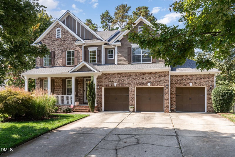 Listing details for 308 Few Cir, Durham, NC 27705 : Welcome to this stunning 5-bedroom, 3.5-bath home with a 3-car garage in the desirable Carillon Forest subdivision! FRESHLY PAINTED interior and with brand NEW CARPETING! The inviting front porch, perfect for rocking chairs, opens into a two-story foyer filled with natural light and beautiful wood flooring throughout the main level. A formal dining room with elegant wainscoting and tray ceilings connects to the kitchen, which boasts granite countertops, top-of-the-line stainless steel appliances, an abundance of cabinets, and a large island for gathering and entertaining. Upstairs, the primary suite offers a peaceful retreat with tray ceilings and a luxurious ensuite bathroom featuring dual vanities, a soaking tub, and a walk-in shower. The freshly installed carpets add comfort and style to the upper level, which also includes four additional bedrooms—providing plenty of space for guests, work, or hobbies. Enjoy the outdoors year-round on the screened porch with Easy Breeze windows, or step out to the stone patio overlooking the fenced backyard. The garage is equipped with myQ technology and an EV charging station for modern convenience. Located just minutes from Durham and Chapel Hill, this home perfectly blends comfort, elegance, and a prime location.