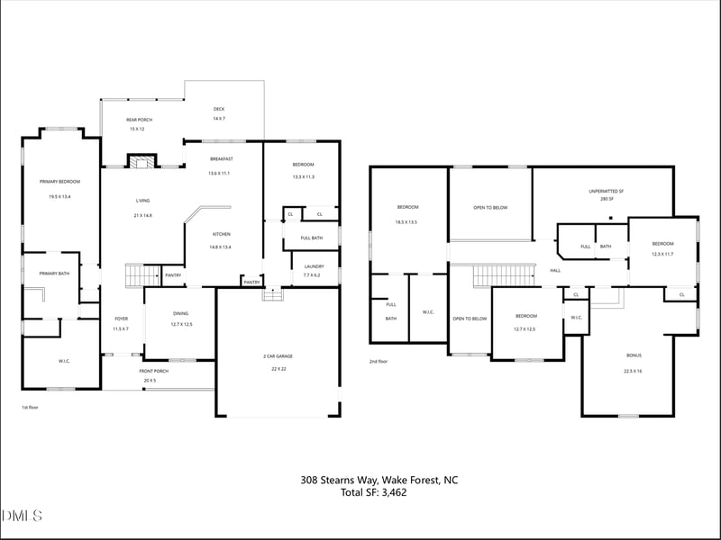 This beautiful 5 beds 4 baths home is located at 308 Stearns Way, Wake Forest, NC 27587 and is listed for sale at $849,000.00. This home was built in 2010, contains 3462 square feet of living space, and sits on a 0.22 acre lot. This residential home is priced at $245.23 per square foot.