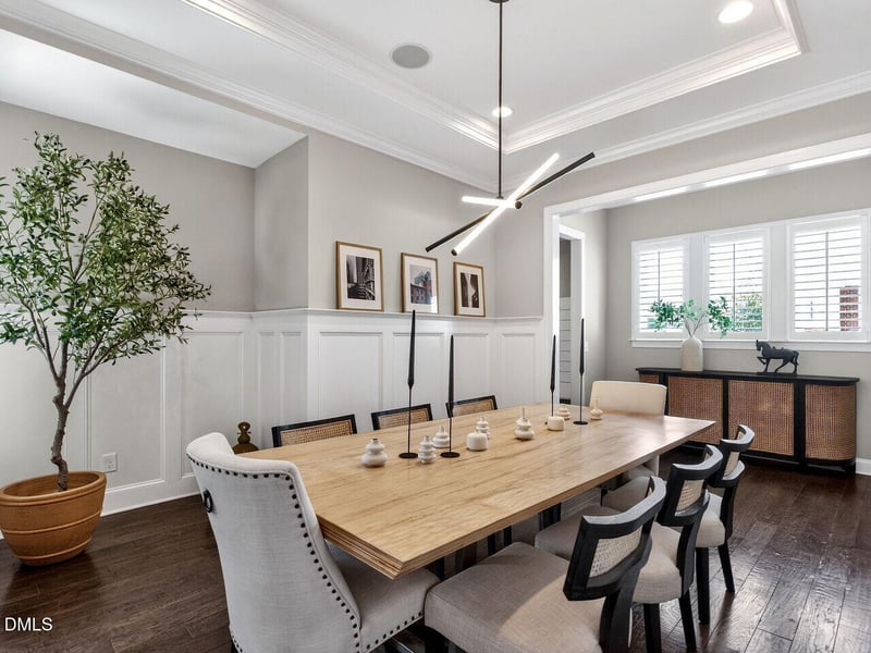 Listing details for 3085 Portland Ave, Apex, NC 27502 : Former model home with striking custom upgrades in a prime Apex location beside the American Tobacco Trail. Well maintained and move-in ready, this 3BR/2.5BA home offers a first-floor primary suite, 10-foot ceilings on the main level, engineered hardwood floors, a gourmet kitchen, and a spacious loft. From the moment you walk in, the architectural details and designer touches make this home stand out. Recent improvements include a custom pantry, architectural accent walls, concrete fireplace surround, custom office closet, and upgraded primary closet. Outdoor living is just as impressive on the over quarter-acre lot with a screened porch featuring wood ceiling and dual fans plus a flagstone patio, built-in grill, griddle, refrigerator, and fenced backyard. Convenient to I-540, Beaver Creek Commons, Sweetwater, and downtown Apex. Don't wait for new construction when this exceptional home is ready now.