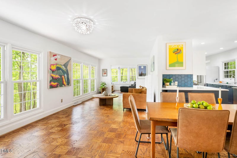 Listing details for 31 Mt Bolus Rd, Chapel Hill, NC 27514 : Tucked into the Mt. Bolus neighborhood of Chapel Hill, this five-bedroom, three-bath home is a rare find -- 3,175 square feet of warmth and character on 1.28 wooded acres, just 1.7 miles from Franklin Street and the University of North Carolina. Set at the end of a quiet cul-de-sac and nestled into a mature forest, the setting for this stylish mid-century home is extraordinary -- private, quiet, and deeply connected to nature -- with direct access to the Bolinwood Trails. Inside, warm and inviting living spaces are oriented around expansive windows that frame the surrounding woods, creating a seamless connection between indoors and out. Two wood-burning fireplaces anchor the home with a sense of comfort and understated elegance. The renovated kitchen is both functional and sophisticated, featuring Thermador appliances and thoughtful finishes designed for everyday living and entertaining alike. All bathrooms have been updated, and the flexible floor plan adapts beautifully to the way people actually live.Two east-facing decks extend the living space outdoors, offering the perfect place to take in winter sunrises, exceptional birdwatching, and the changing light through the trees. The walk-out daylight basement is a home unto itself: a spacious great room, two bedrooms, a full bath, laundry, an efficiency kitchen, storage space and a dedicated studio and workshop. It is an ideal setup for multigenerational living, long-term guests, a creative practice, or simply the luxury of having room to spread out. Outside, the grounds are exceptional. Lovingly landscaped by the owner, an experienced stonemason, the gardens feature handcrafted stonework, mature plantings, and natural gathering spaces that feel timeless and intentional. Secluded, peaceful, and only minutes from the center of Chapel Hill, this is a home that truly feels like a retreat.