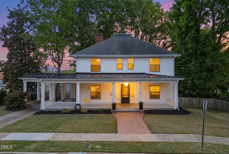Listing details for 311 Fayetteville St, Clayton, NC 27520 : Celebrating its 100th birthday this year, this lovingly restored historic beauty is a true downtown Clayton treasure, set on a rare double lot just one block from the heart of town! Brimming with charm and grace, this home wraps you in warmth from the moment you arrive. The massive front porch, complete with porch swing, feels like it was made for lemonade, good conversation, and waving at the town parades as they pass right by! Lovingly transformed between 2018-2020, the home's restoration preserved the details that make historic properties so special. Refinished original hardwoods, restored plaster walls, original doors with skeleton keys, original doorbell, select original light fixtures, cedar closets, and a beautifully restored vintage tub in the primary bath all add to the home's unforgettable personality. All 3 fireplaces were cleaned and deemed safe to use (though sellers have never used them). Original radiator heat remains in working order, and central heat and air were added for modern comfort. Plumbing and electrical were also updated during the renovation. The kitchen and butler's pantry hold onto their original cabinetry and farmhouse feel while offering standout features including a Wolf range, pot filler, center island, and appliances that all convey. A tankless water heater with reservoir adds convenience. The owners are even leaving some of the furniture they purchased specifically for the home, including 2 antique pieces! Outside, the setting is just as charming, with Trex decking, fenced backyard, cedar raised garden beds, eucalyptus tree, and extensive renovation improvements including roof, gutters with leaf guards, French drains, and rebuilt front porch. Seller has been told that the original heart-of-pine siding remains beneath the vinyl siding and is believed to be in good condition. Full of history, heart, and storybook charm, this downtown Clayton gem is truly one of a kind!