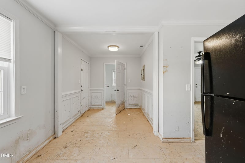 Listing details for 312 Omega Rd, Durham, NC 27712 : Multiple offers received. H&B deadline Monday 2/16 at 9 am. One-story home offering 3 bedrooms and 1.5 bathrooms with great potential. Features include a wood deck overlooking the backyard and a functional layout ready for updates. The home needs new flooring and paint, with some areas of drywall removed down to the studs—an excellent opportunity for investors or buyers looking to renovate and customize to their taste.